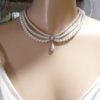 סט תכשיטי כלה עם פנינים ואבני חן: קולר, עגילים, צמיד