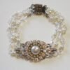 סט תכשיטי פנינים לכלה בעבודת יד: צ'וקר וצמיד ספיר כחול