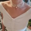 עגילי פנינה אמיתיים משובצים באמרלד: פנינים אמיתיות משובצות באמרלד, גולדפילד, בסגנון וינטג' משנות ה-20
