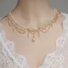 שרשרת כלה בסגנון וינטג' עם פנינים: תכשיטי חתונה עם ריינסטון פרחי זהב