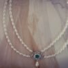 שרשרת כלה פנינים בסגנון וינטג': פרח כסף, גבישי סברובסקי