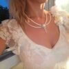 שרשרת פנינים לכלה: פניני סברובסקי בצבע קרם, אבזם פיליגרן מוזהב, צ'וקר חתונה וינטג'
